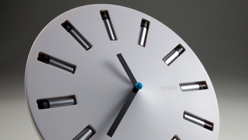 Wer kennt das nicht: Gerade erst eingesteckt und schon wieder sind die Batterien leer. Im Wecker, in der Funktastatur oder im Radio. Doch meistens ist noch Restenergie da. Diese nutzt nun eine neue Uhr. Die Einheiten auf dem Ziffernblatt selbst sind die zwölf Einschübe für die Batterien und drückt man in der Mitte den blauen Knopf, zeigt die Uhr auch noch, welche Batterie nun endgültig leer und fachgerecht entsorgt werden kann. Und da die Batterien als sichtbares Stilmittel verwendet werden, wechselt die EcoClock je nach Batterie-Hersteller das Aussehen. Derzeit ist die effektive Uhr noch ein Prototyp, doch gewann der taiwanesische Nachwuchsdesigner Bor-Ru Huang damit schon den vor allem in Asien bekannten Lite-On Award.
